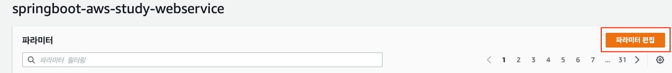 - 기본 설정된 파라미터 목록들이 보이는데, 우측 상단