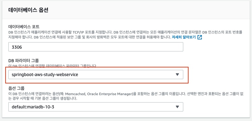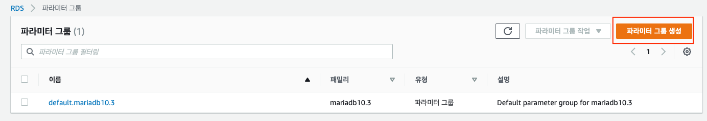 - DB파라미터 그룹을 선택한다.