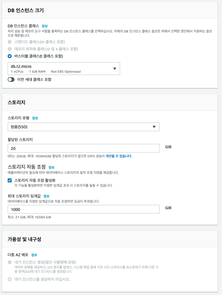 - 어떤 용도의 DB 인스턴스인지 알아볼 수 있게 식별자를 입력한다.
